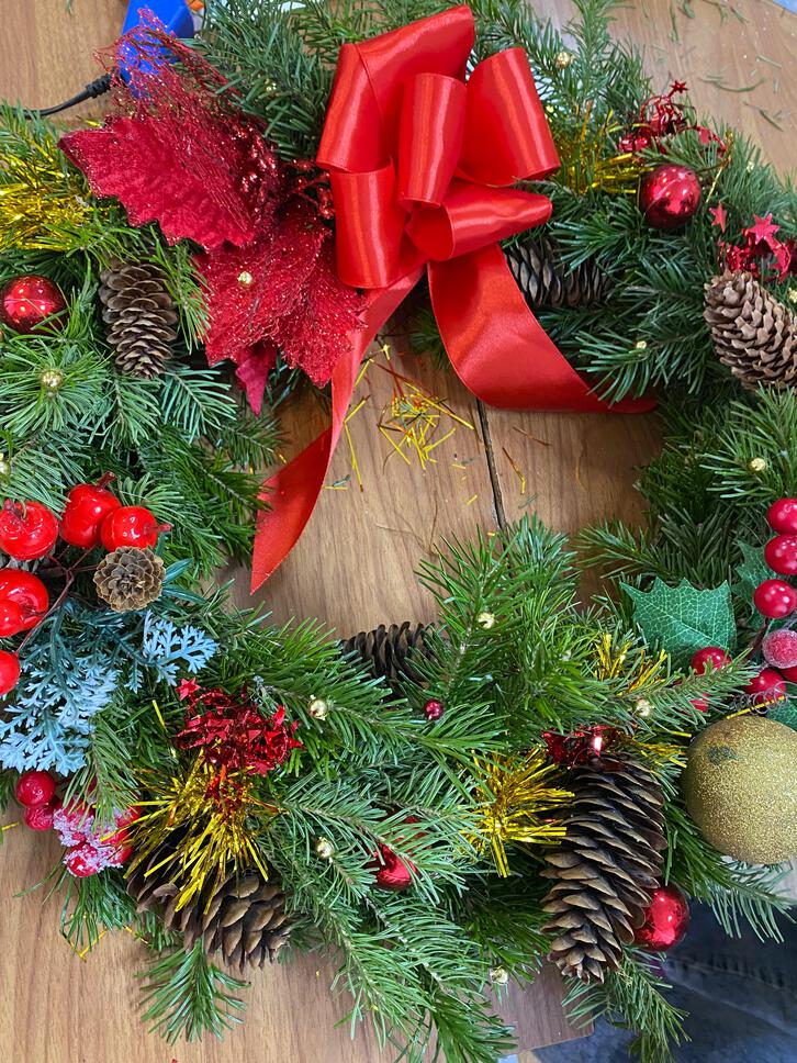• Богатый выбор материалов: мы предоставим вам всё необходимое: основу, пихтовые ветки, шишки, ёлочные игрушки, декоративные ленты, бусины, сухофрукты и множество других праздничных украшений. Вы сможете дать волю своей фантазии и создать по-настоящему уникальный венок.