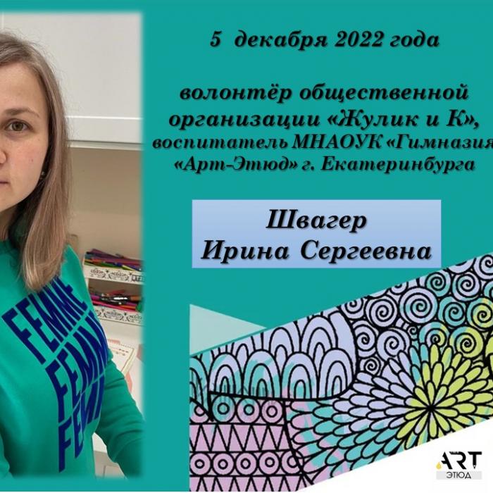 5 декабря на классную встречу, организованную Аленой Игоревной Замановой и посвящённуюдобровольцам, в 5 «Б» класс пришла волонтёр общественной организации «Жулик и К» Ирина Сергеевна Швагер.