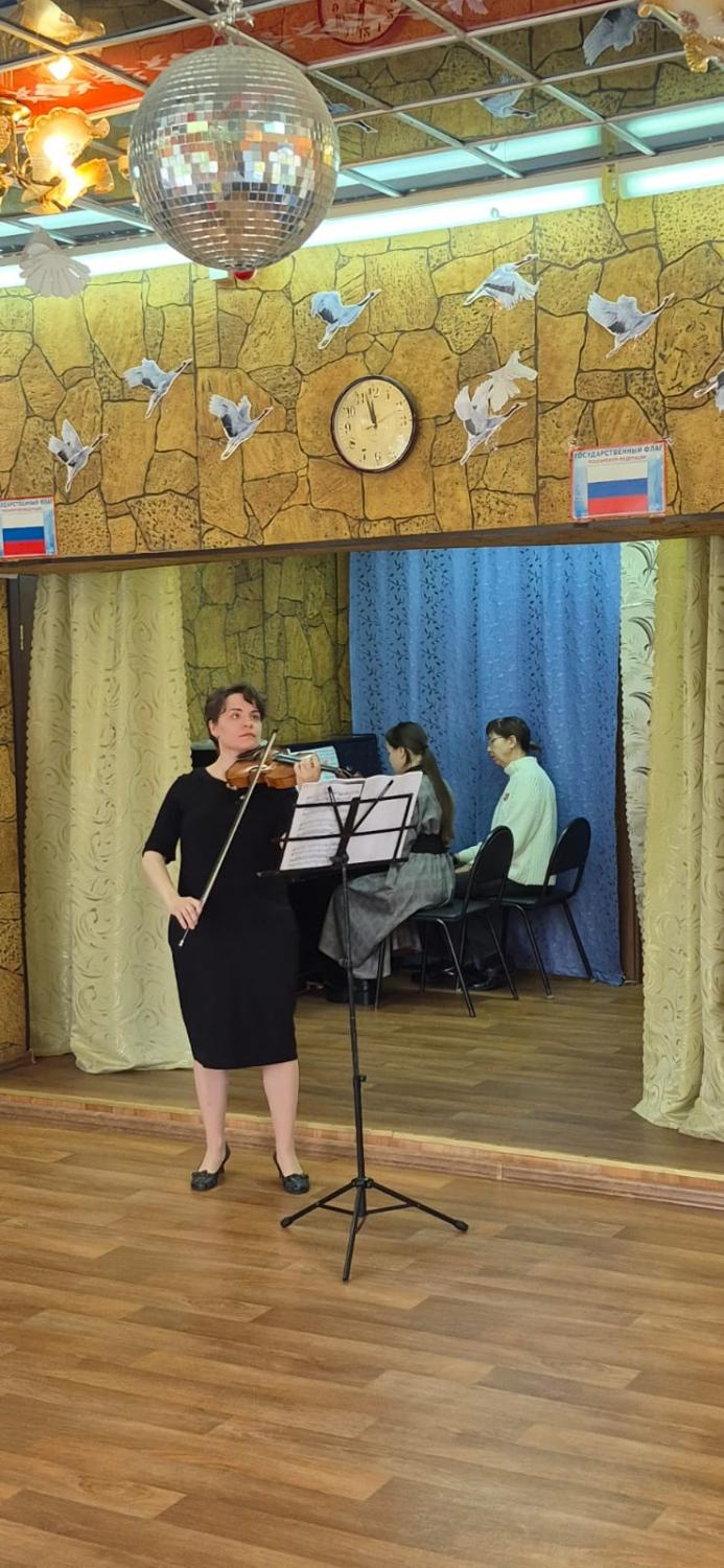 Запоминающим стало выступление Пронякиной Софии. Кларнет в ее руках звучал красиво, ярко и уверенно. Конечно жена концерте были представители отделения народных инструментов. Выступили Сурин Никита (с песней военных лет), Шмелева Александра, ансамбль «Рондо» (Демина Кира, Горшков Костя, Синюков Роман), семейный Арт-дуэт балалаечников «Братья» (Шанины Егор и Григорий вместе с бабушкой Натиной Л.А.) и преподаватель Семенова И.В.