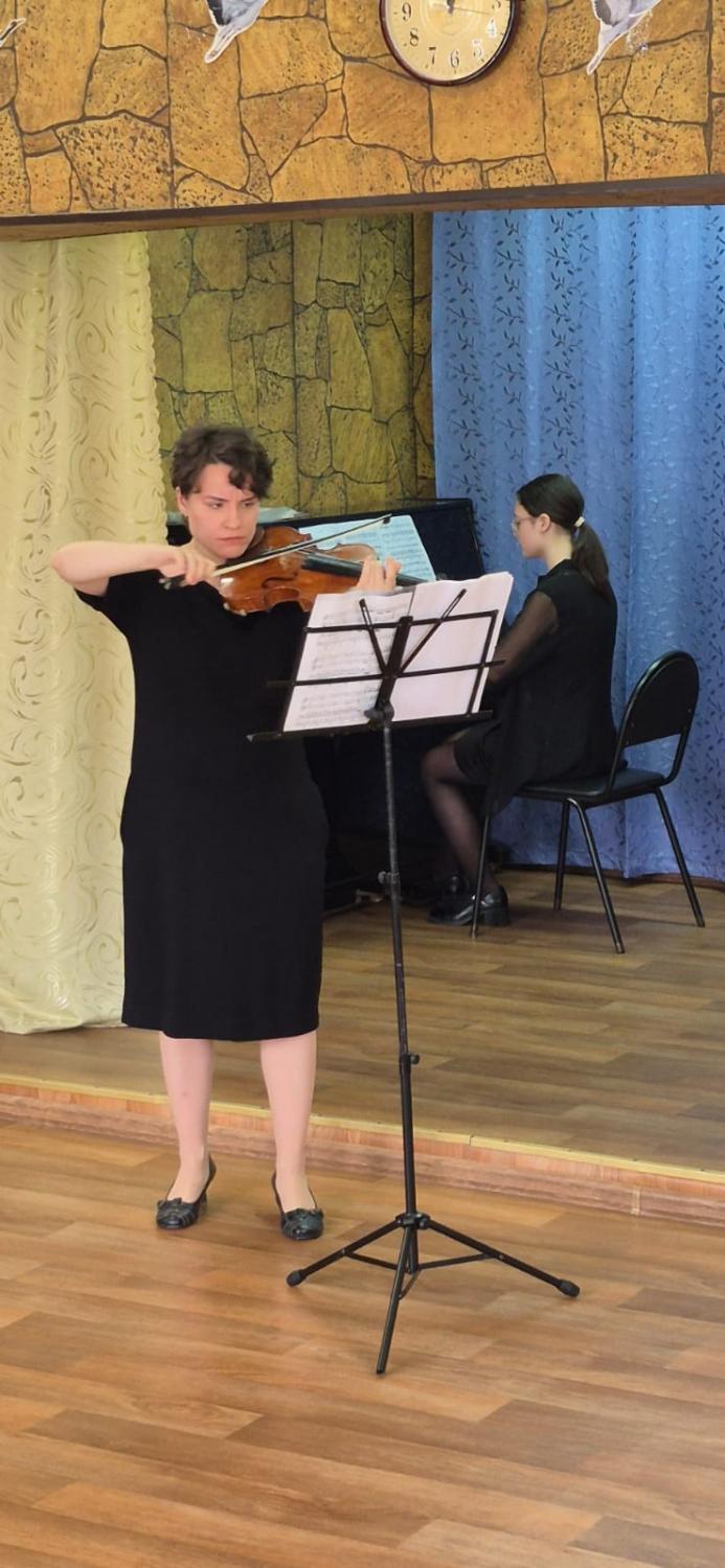 Уверенно и по взрослому прозвучали выступления восьмиклассниц фортепианного отделения(Ждановой Ярославы, Павловой Екатерины и Щукиной Дарьи), которые уже совсем скоро будут сдавать концертмейстерский класс. Девочки выступали вмести с педагогом по классу скрипки Харитоновой И.С.