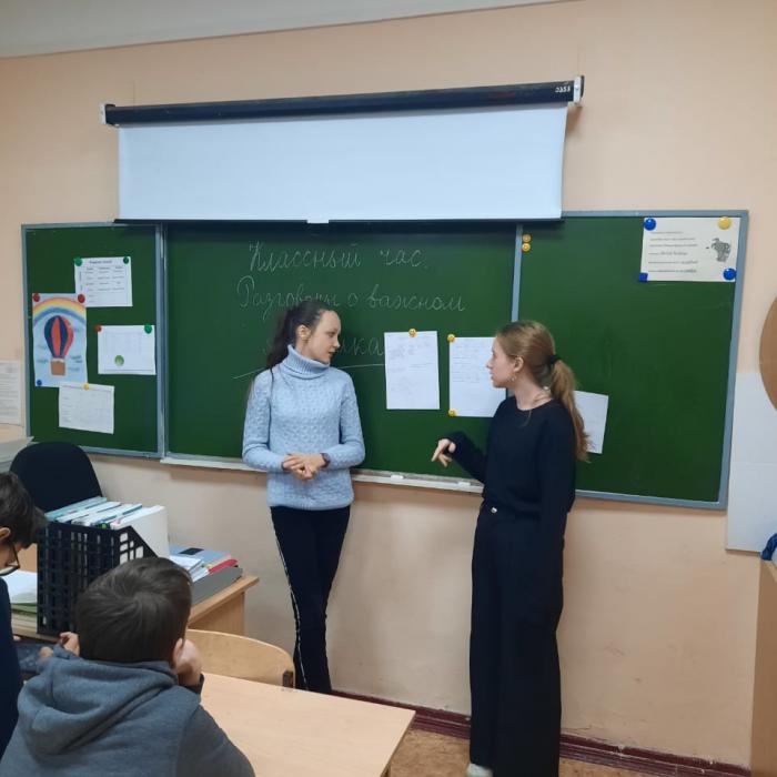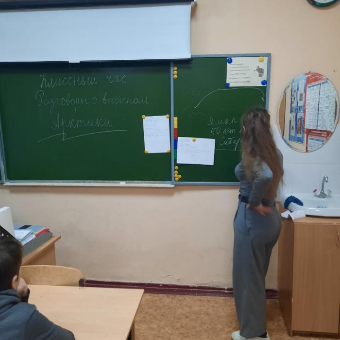 В 7б классе (классный руководитель Мария Алексеевна Уфимцева)затронули особенности флоры и фауны Арктики. Выясняли, как можно жить в таких суровых условиях. Было интересно и мальчикам, и девочкам.