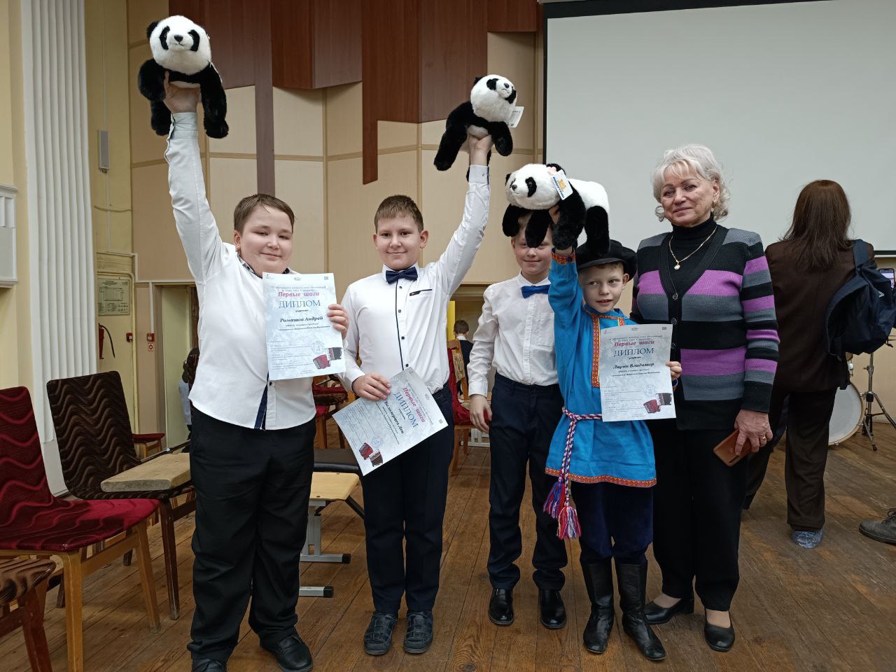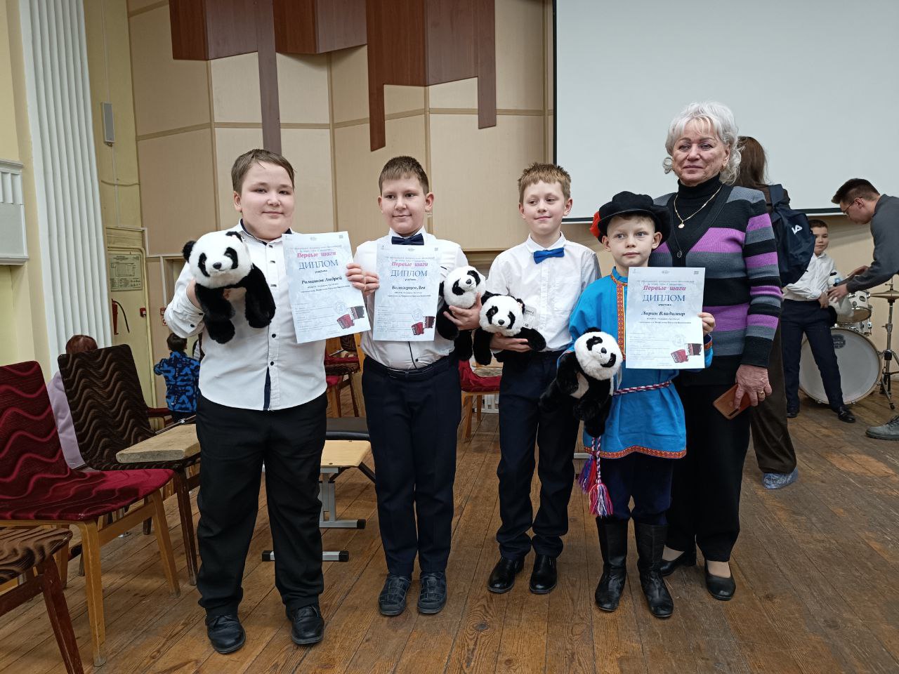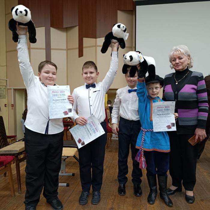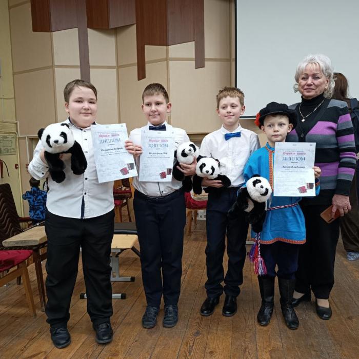 От Гимназии «Арт-Этюд» выступили ученики преподавателя Вахрушевой Натальи Васильевны: Ларин Вова – ученик 1 класса (фольклорного отделения), Белозерцев Лёва – ученик 2 класса, Ромашов Андрей - ученик 2 класса, Пирамидин Коля - ученик 3 класса.